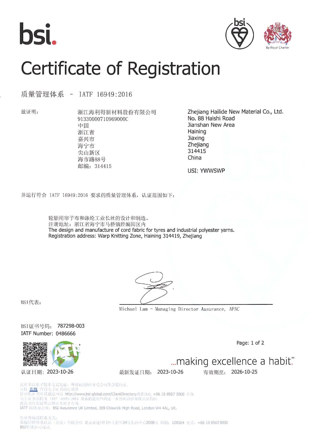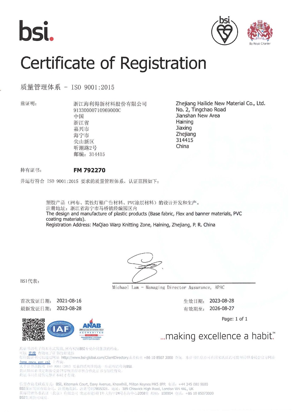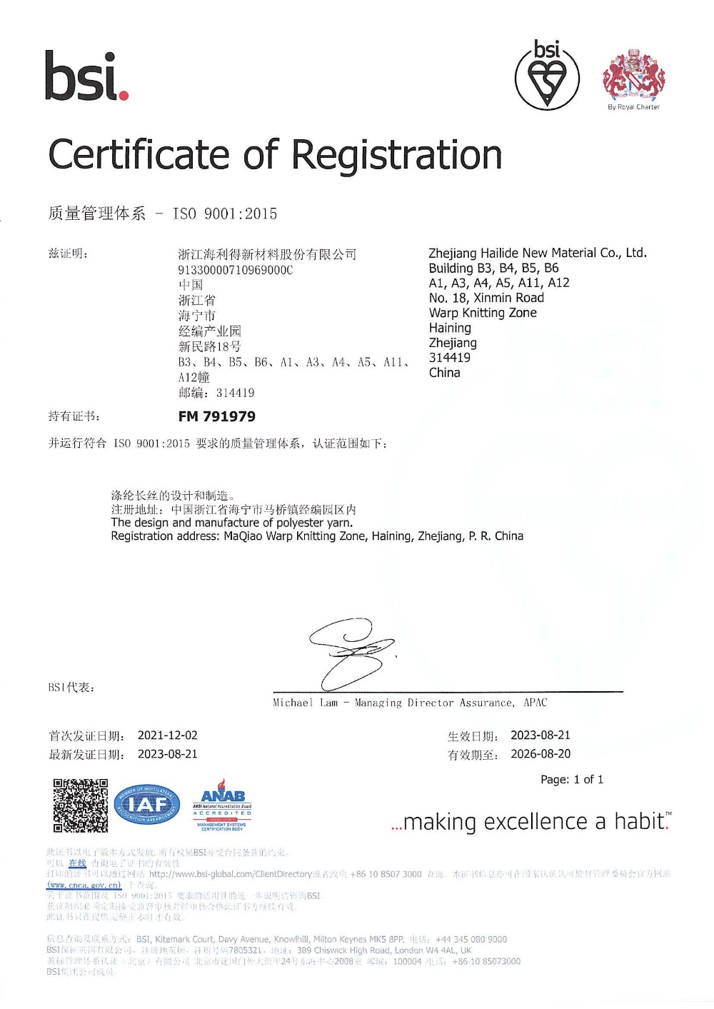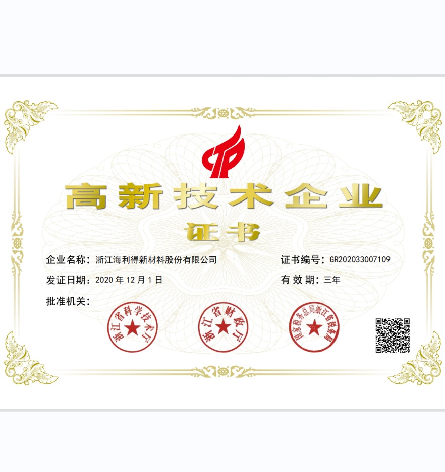 浙江海利得新材料股份有限公司成立于2001年,2008年1月在深交所上市,股票代碼002206。公司主營產品:聚酯切片、滌綸工業絲、輪胎簾子布、數碼噴繪材料、涂層材料、裝飾材料、石塑地板等,產品遠銷海內外80余個國家和地區。