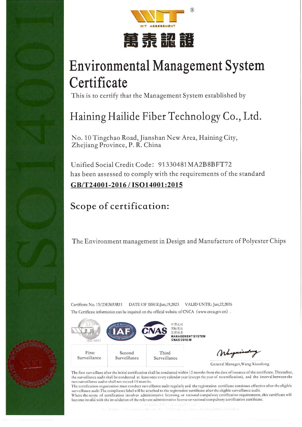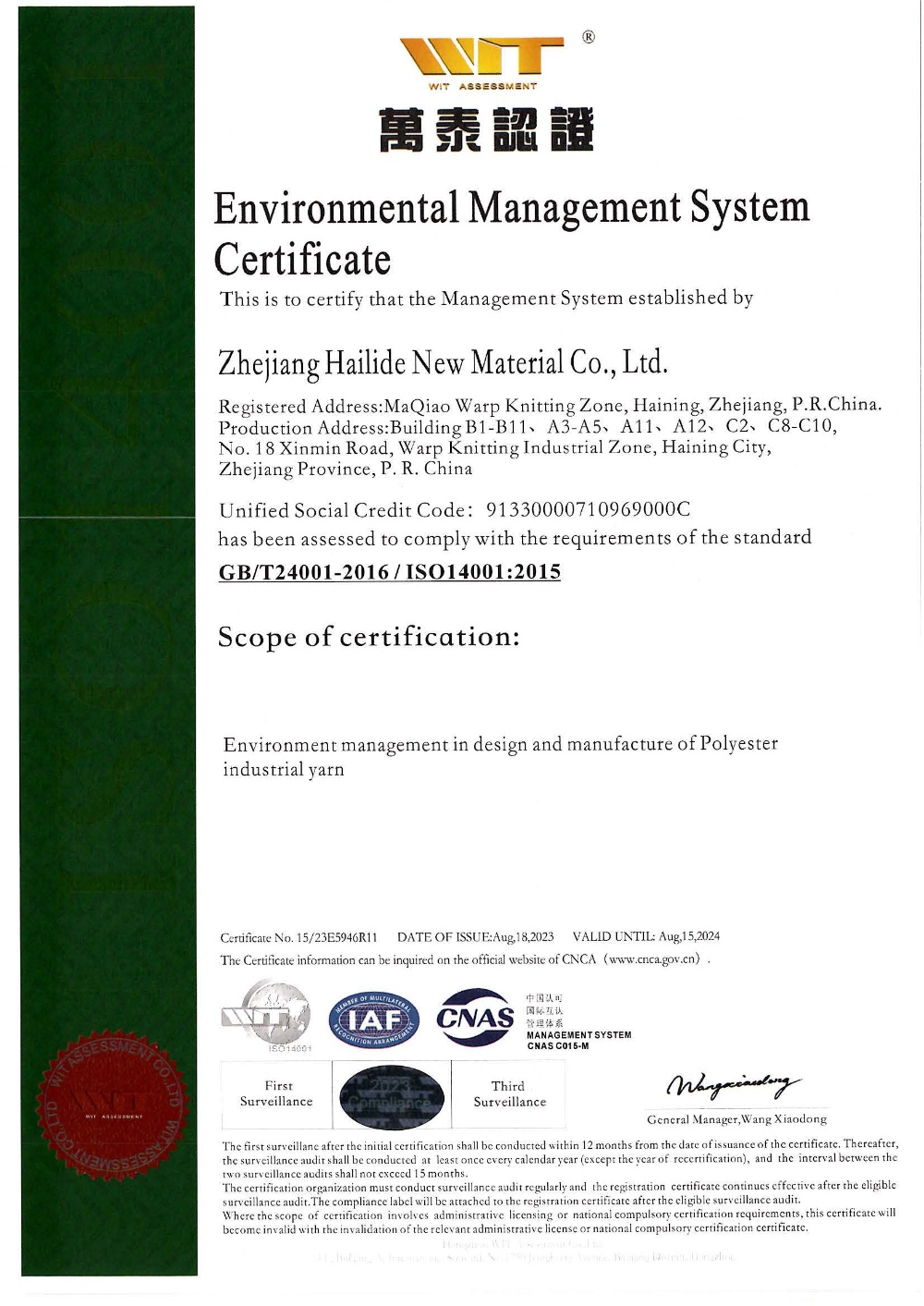 Main Business:Industrial Polyester Yarn:110kt/y (Phase 1)