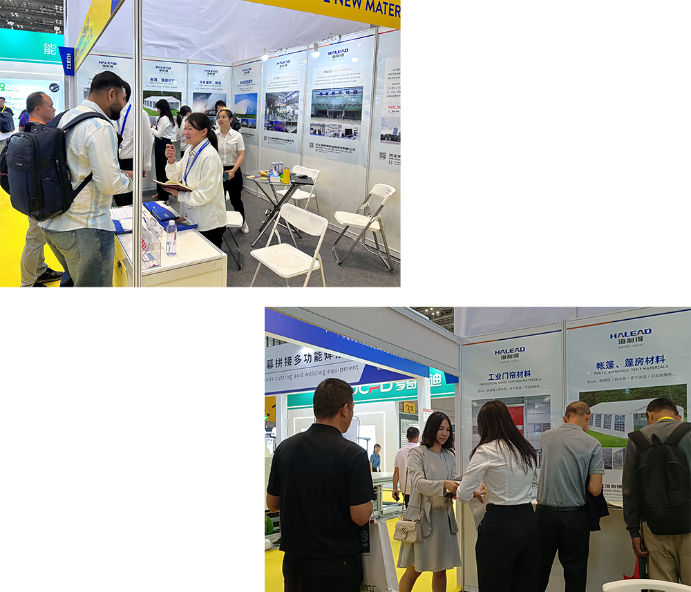 本次展會(huì),我們展示了環(huán)保無(wú)味、安全可靠的門簾、篷房材料等迭代升級(jí)后的優(yōu)質(zhì)產(chǎn)品,以及可滿足客戶多樣化需求的多規(guī)格壓紋產(chǎn)品。同時(shí)還隆重推出了3D紋篷房夾黑的新產(chǎn)品,吸引了眾多參觀者的目光。這些產(chǎn)品不僅體現(xiàn)了我司在技術(shù)創(chuàng)新方面的不懈努力,也展示了對(duì)環(huán)保事業(yè)的堅(jiān)定承諾。