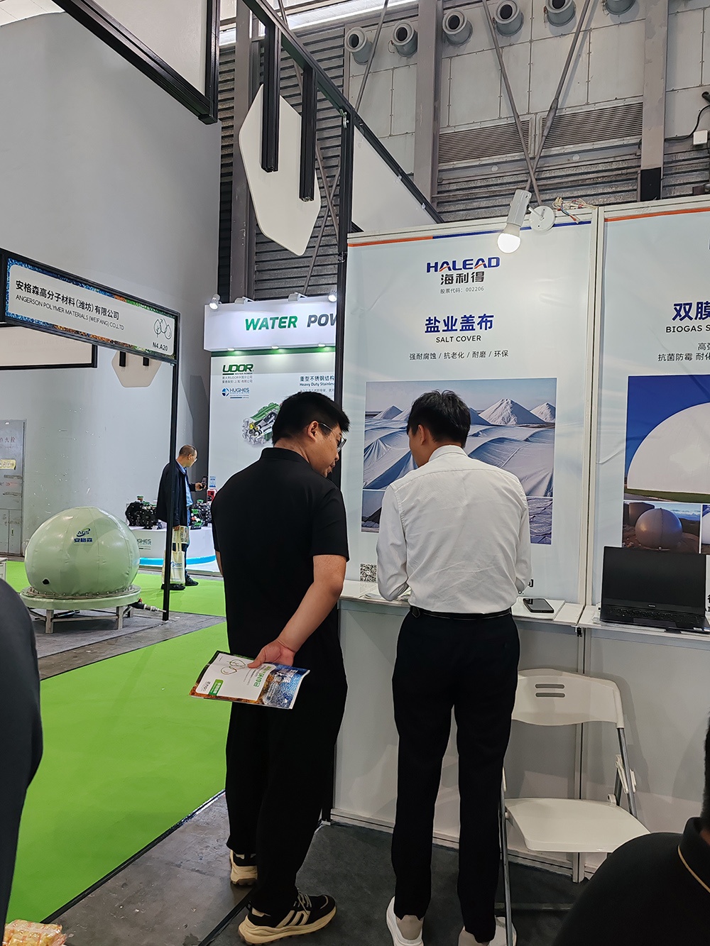 近日,第26屆中國環博會在上海新國際博覽中心舉辦。本次展會,海利得向客戶展示并推廣了第三代環境材料與產品,包括沼氣柜內膜、外膜、污水池蓋頂和圍欄等。此外,本次展會還特別推出一款新產品——鹽業蓋布,該產品已通過第三方EN71-3檢測以及鹽霧測試,主要用于鹽業廠蓋布,是一款新型環保材料。